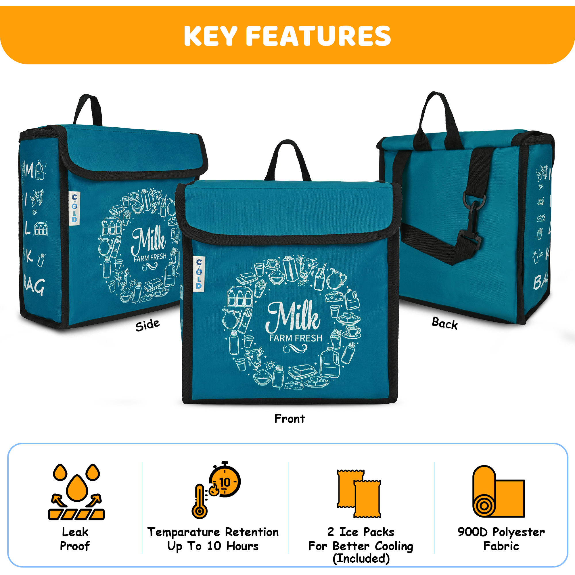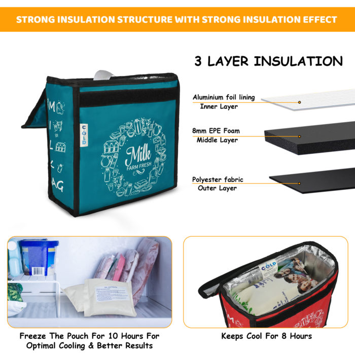 Outer PVC fabric is waterproof and thermally insulated PET linings, while Inner fabrics use Aluminium Linings. The milk will remain cold and fresh in any climate thanks to 6 Way Insulation.