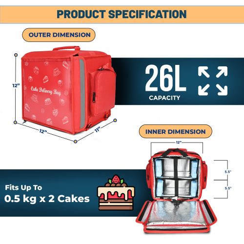 Insulated 1/2 kg Cake Delivery Bag – Red